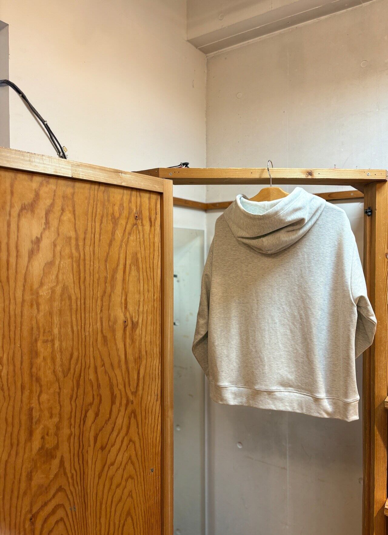 ライトな仕上がりに、フードのボリュームが特徴的です。しっかりと深めに被ることができます。
