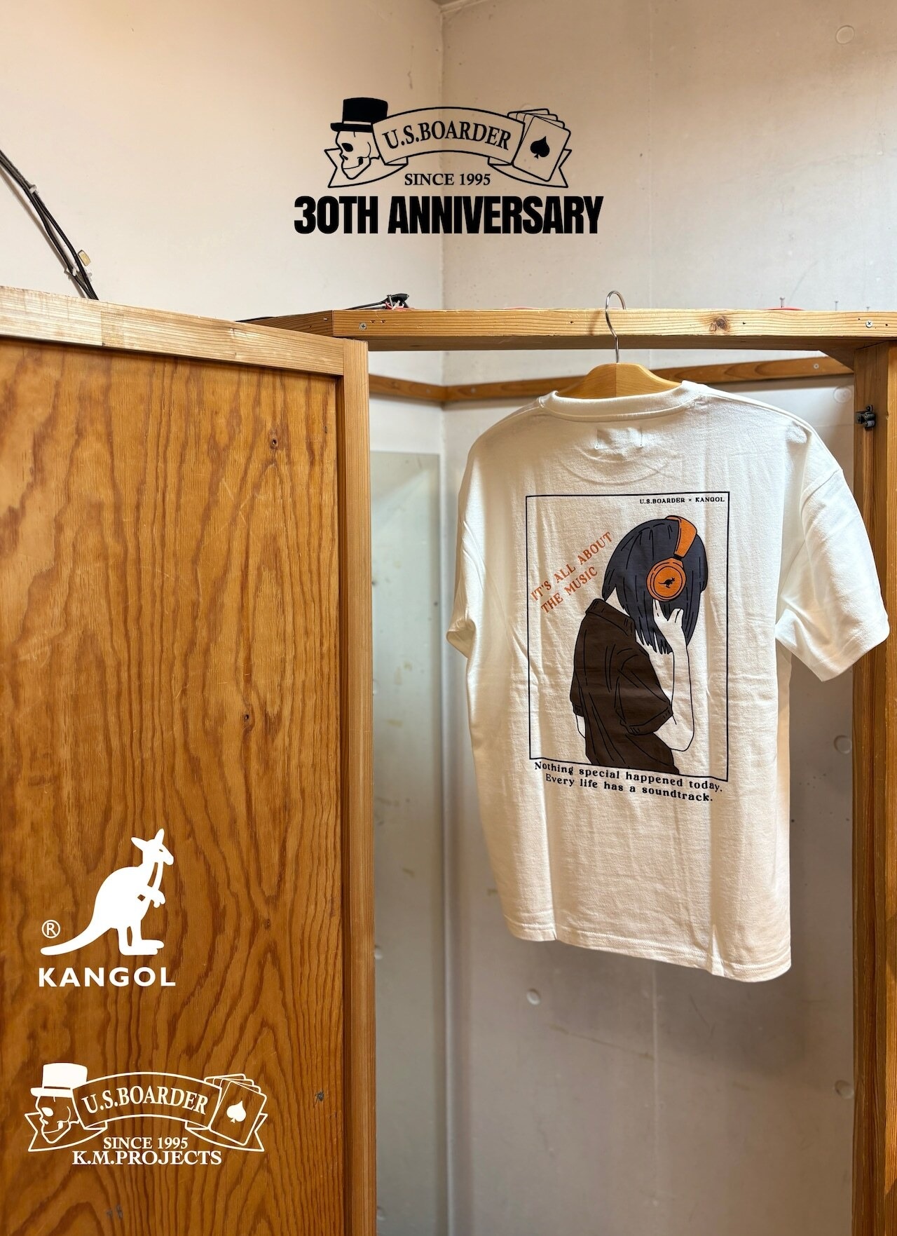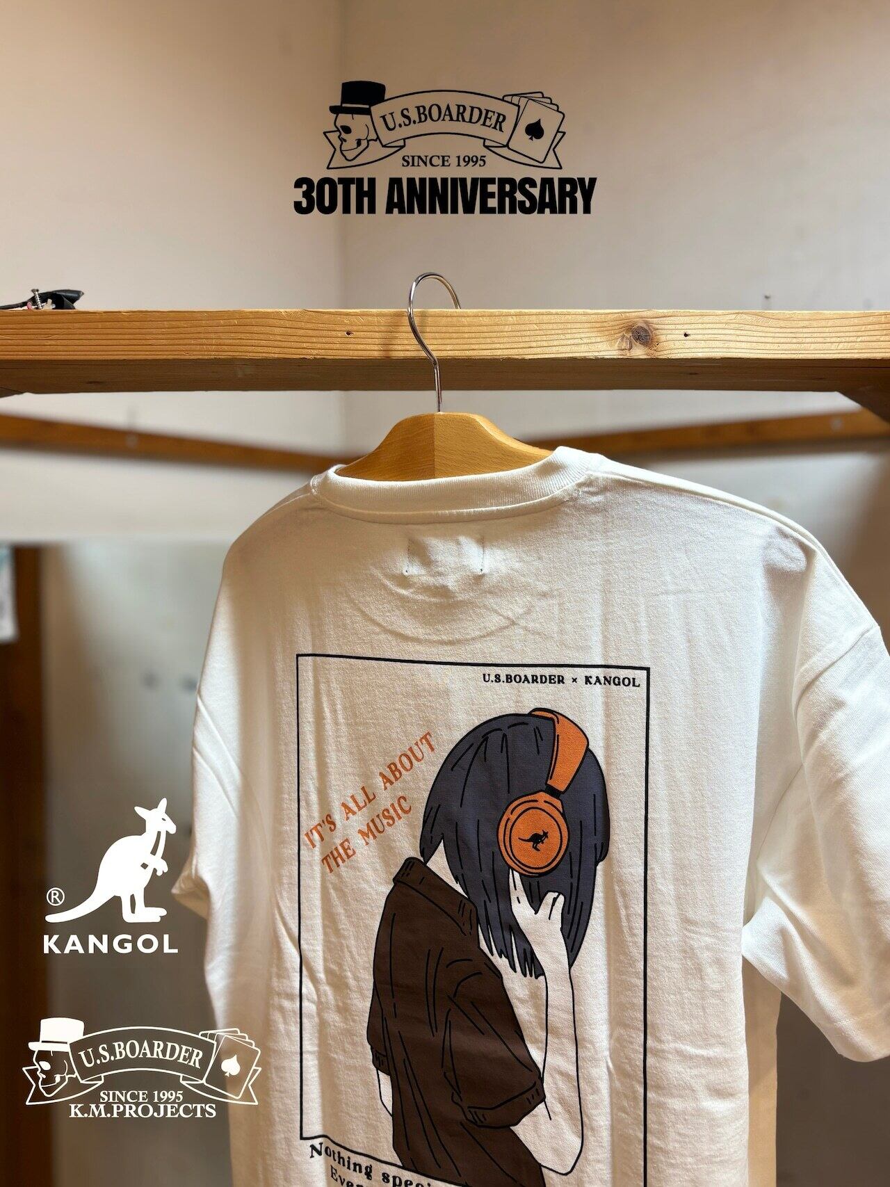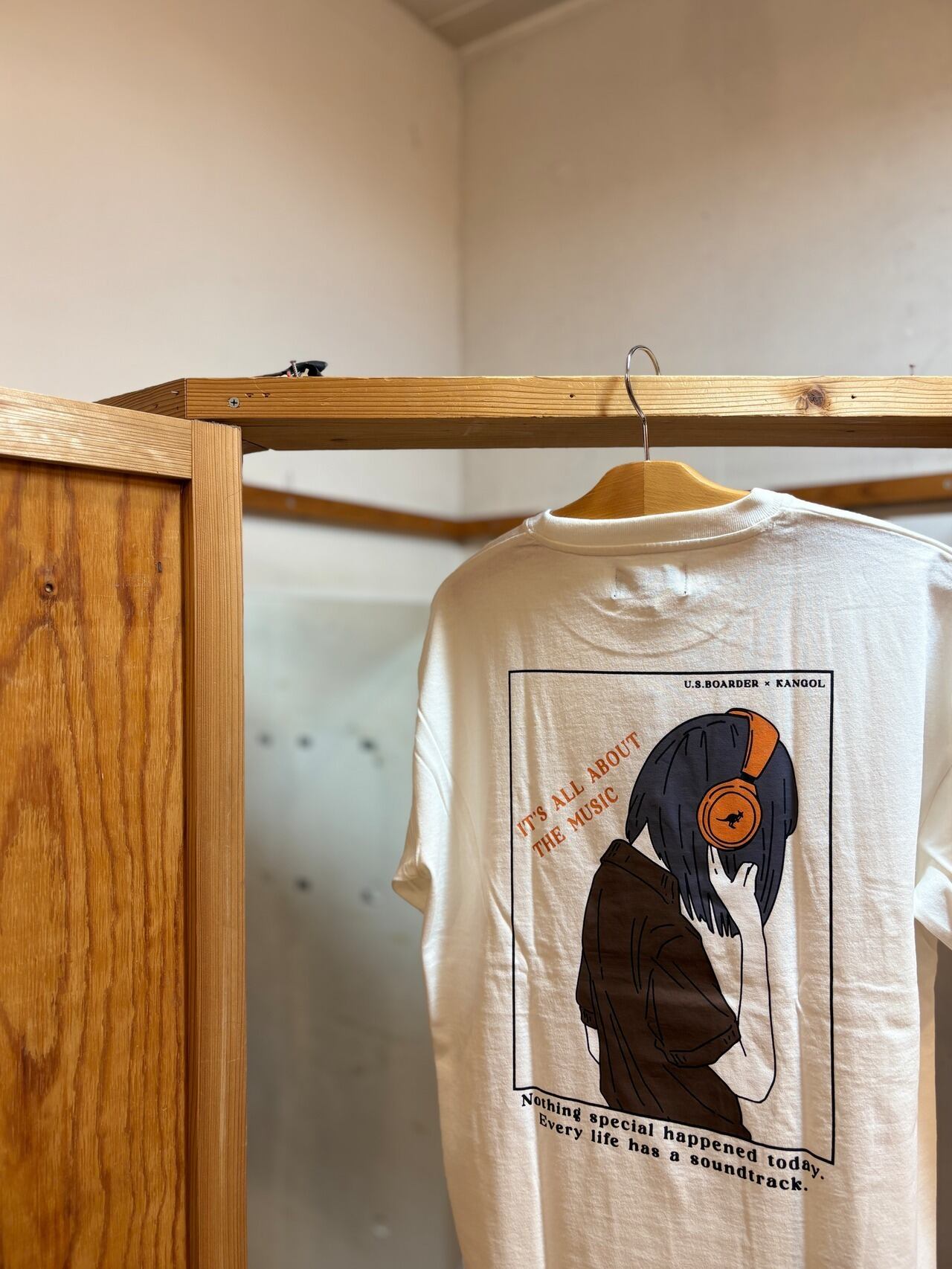 usboarder T-shirt S/S カンゴールT Music 音楽 KANGOL®︎ U.S.BOARDER ダブルネーム White WHT ホワイト 白色 Tシャツ ヘッドフォン 女子 カンゴール | U.S.BOARDER