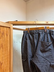 ウエストはドローストリング仕様に、ベルト無しでも着用できます。後ろ部分がゴム仕様になっている為、リラックスした履き心地です。