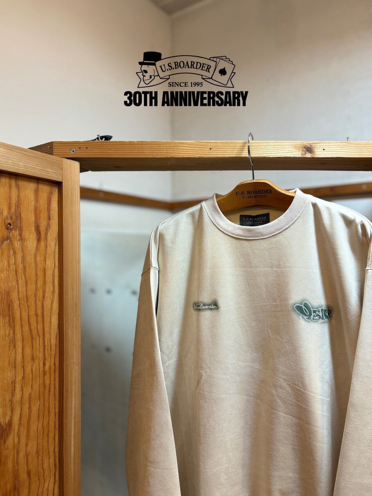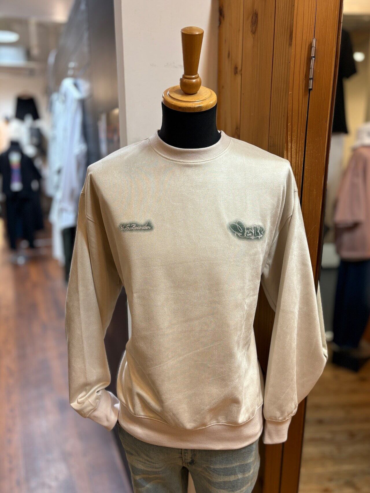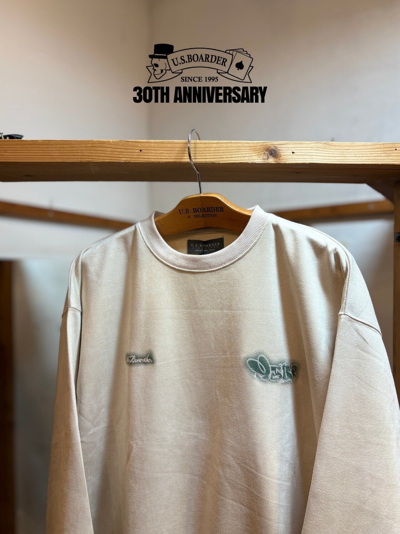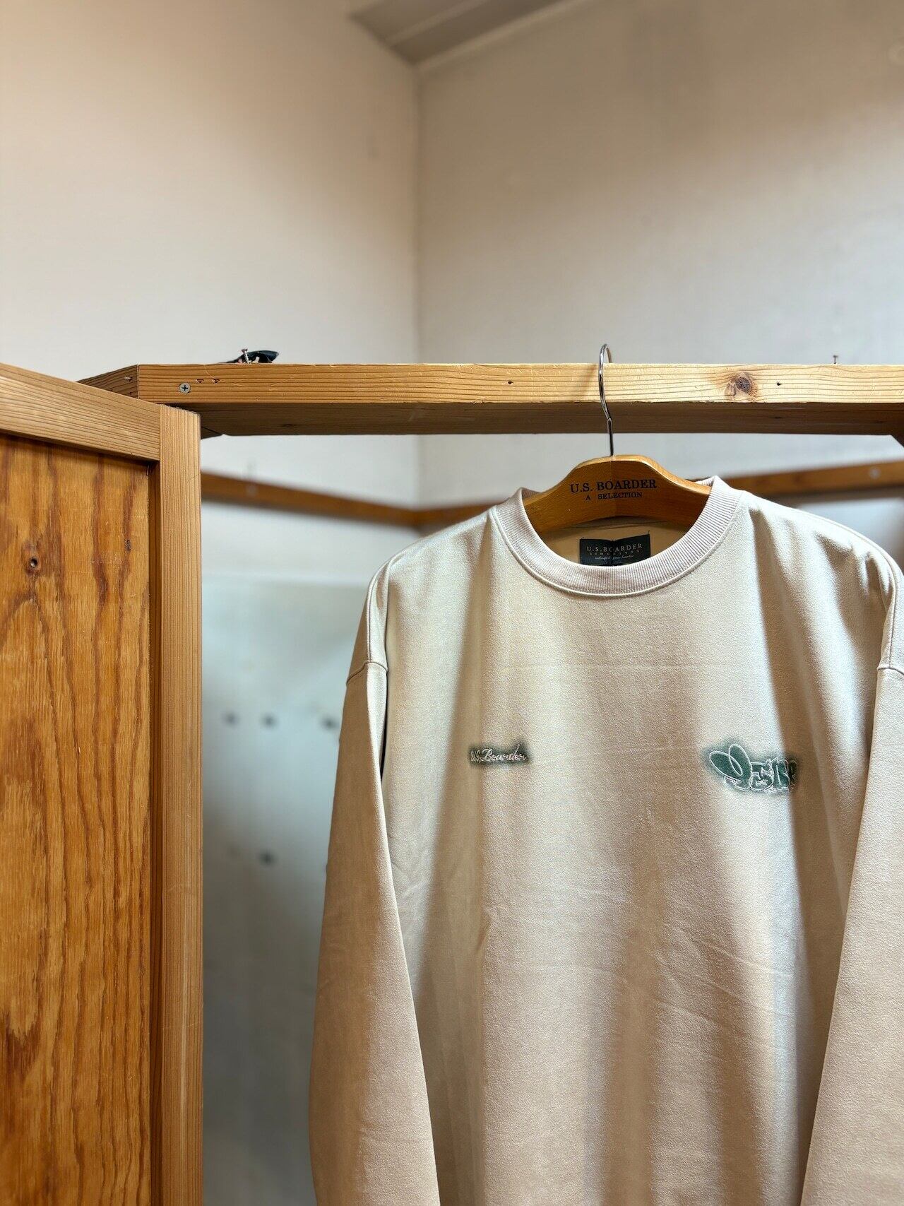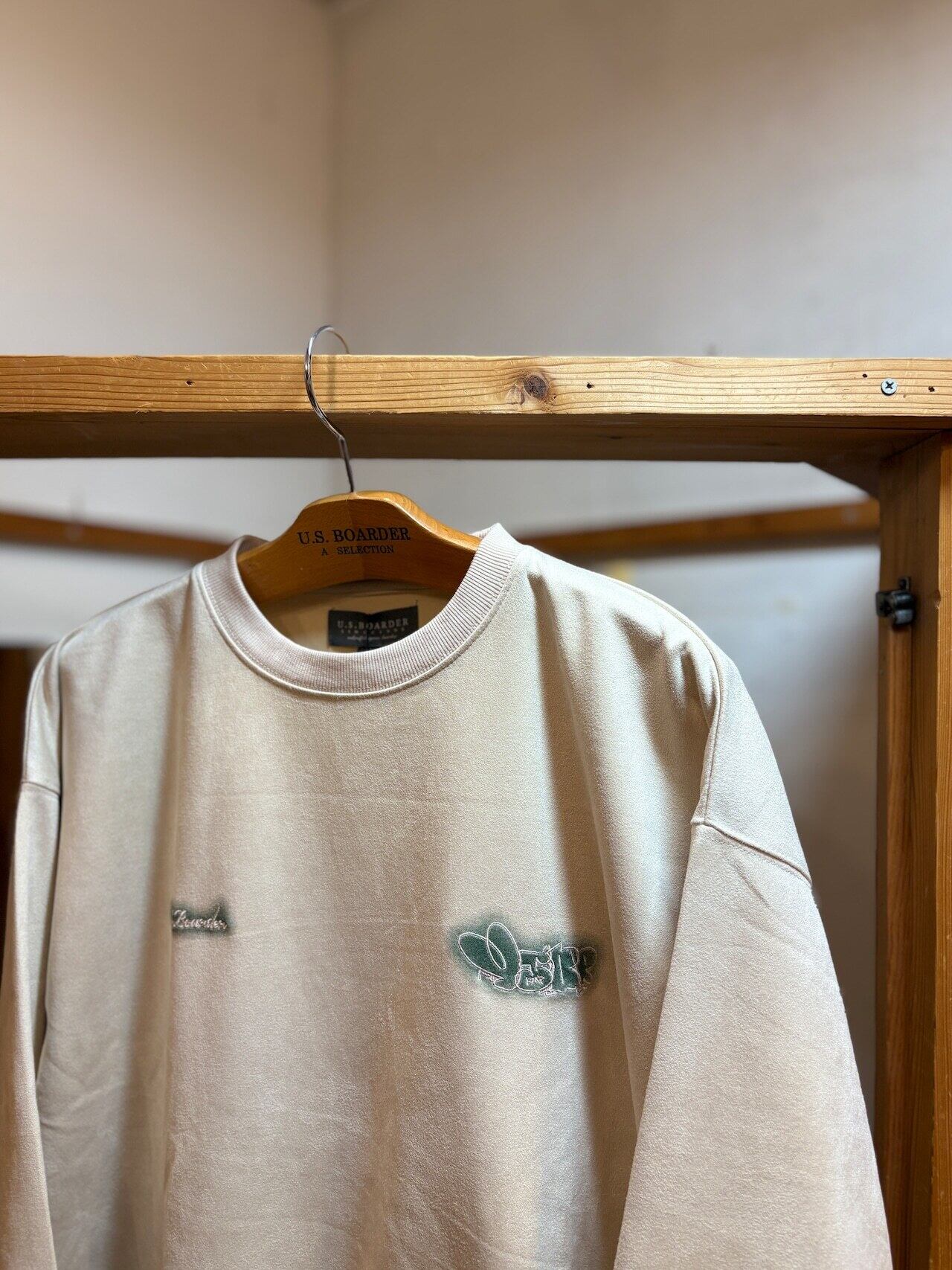 usboarder スエードトレーナー スエード トレーナー suede sweat shirt IVR アイボリー Ivory Throw up スローアップ 刺繍 U.S.BOARDER | U.S.BOARDER