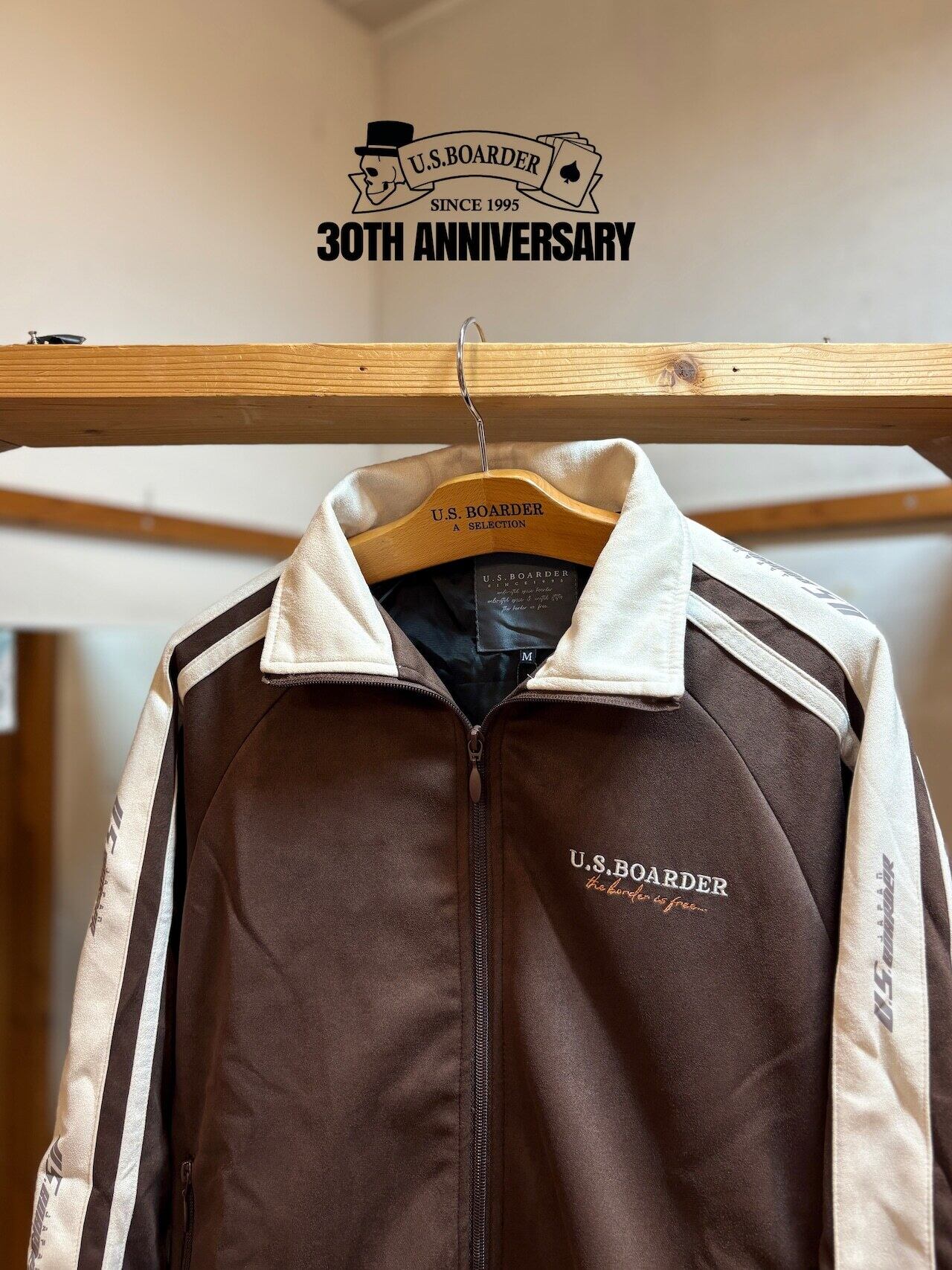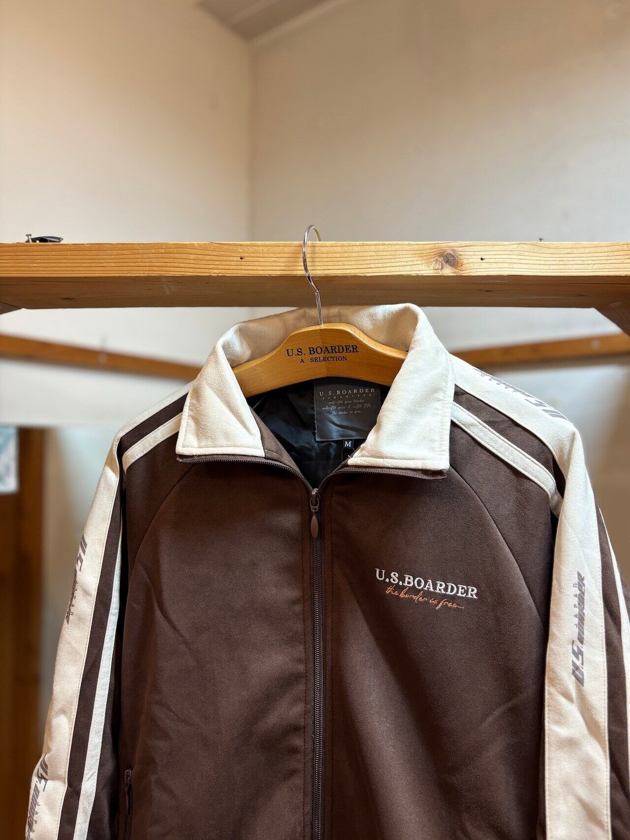 U.S.BOARDER ライントラックJ Ⅱ トラックジャケット Brown BRN ブラウン 茶色Jacket フェイクスエード ベロア風 トラックジャケット ブルゾン メンズ レディース ユニセックス u.s.boarder ユーエスボーダー