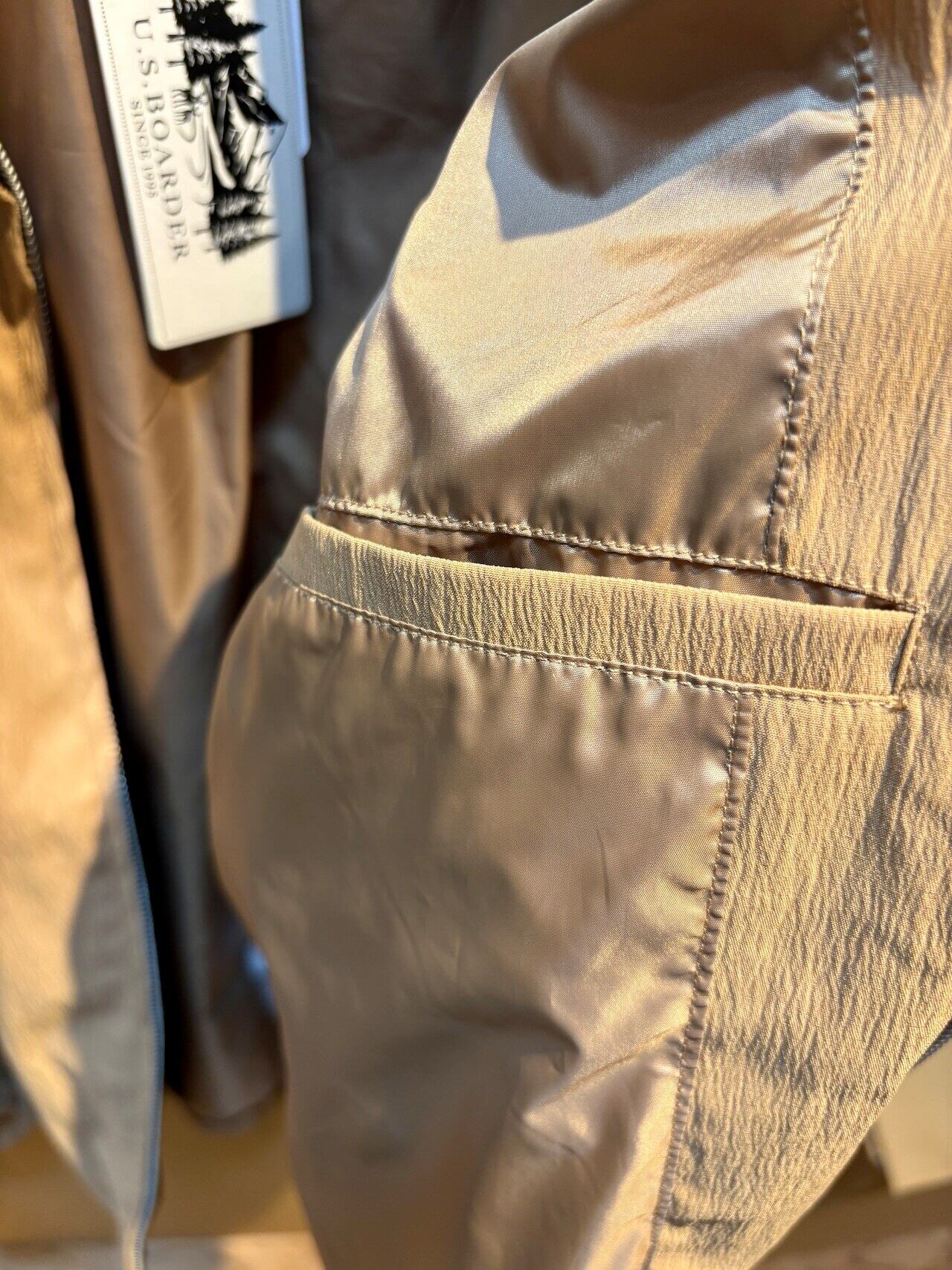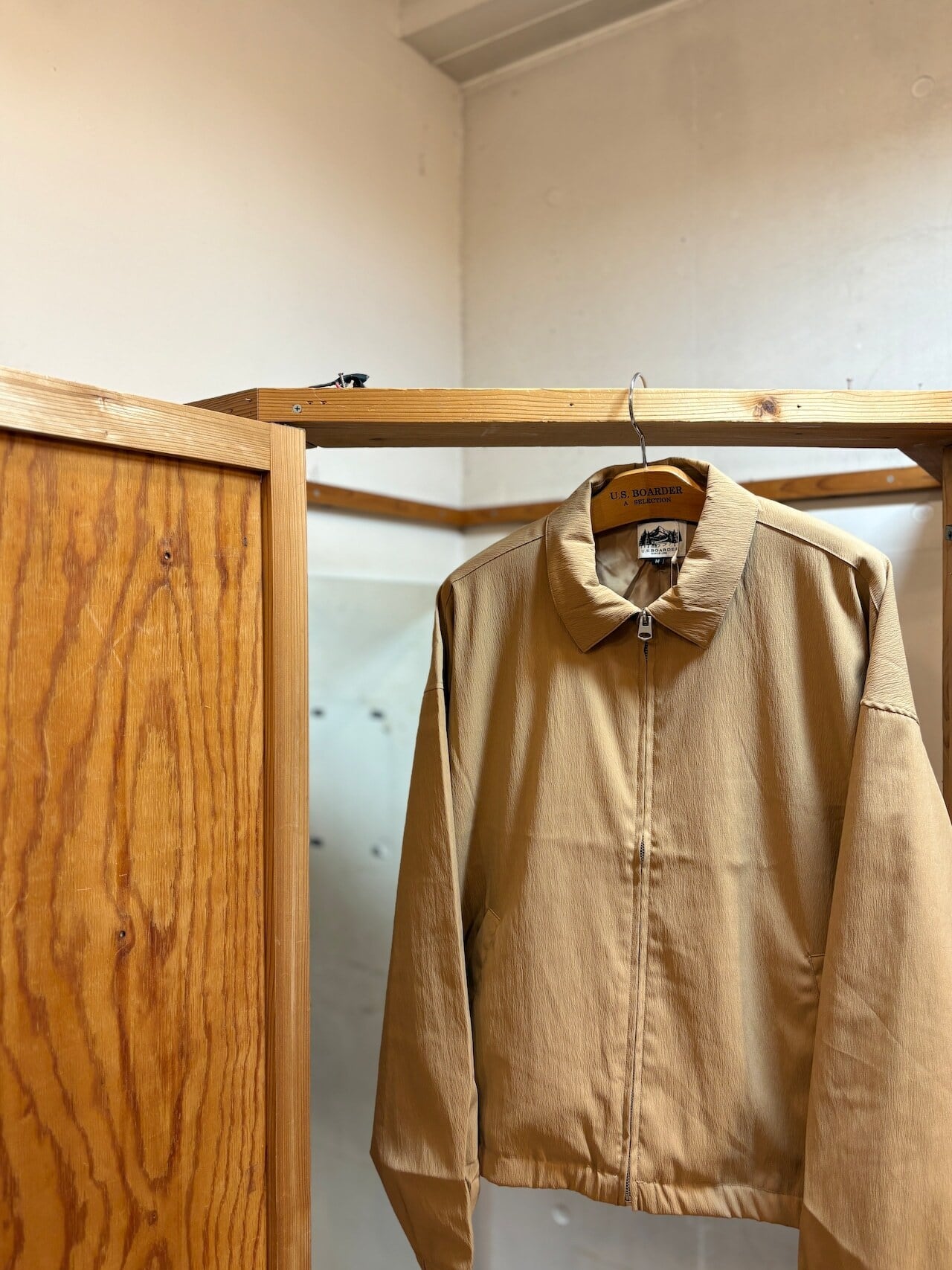usboarder ZIP JKT Beige 黄土色 BEG Striped Crepe Fabric 楊柳生地 スイングトップ ZIPブルゾン Swing top ユーエスボーダー | U.S.BOARDER