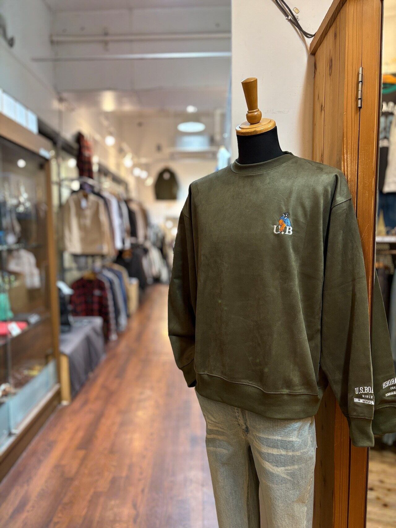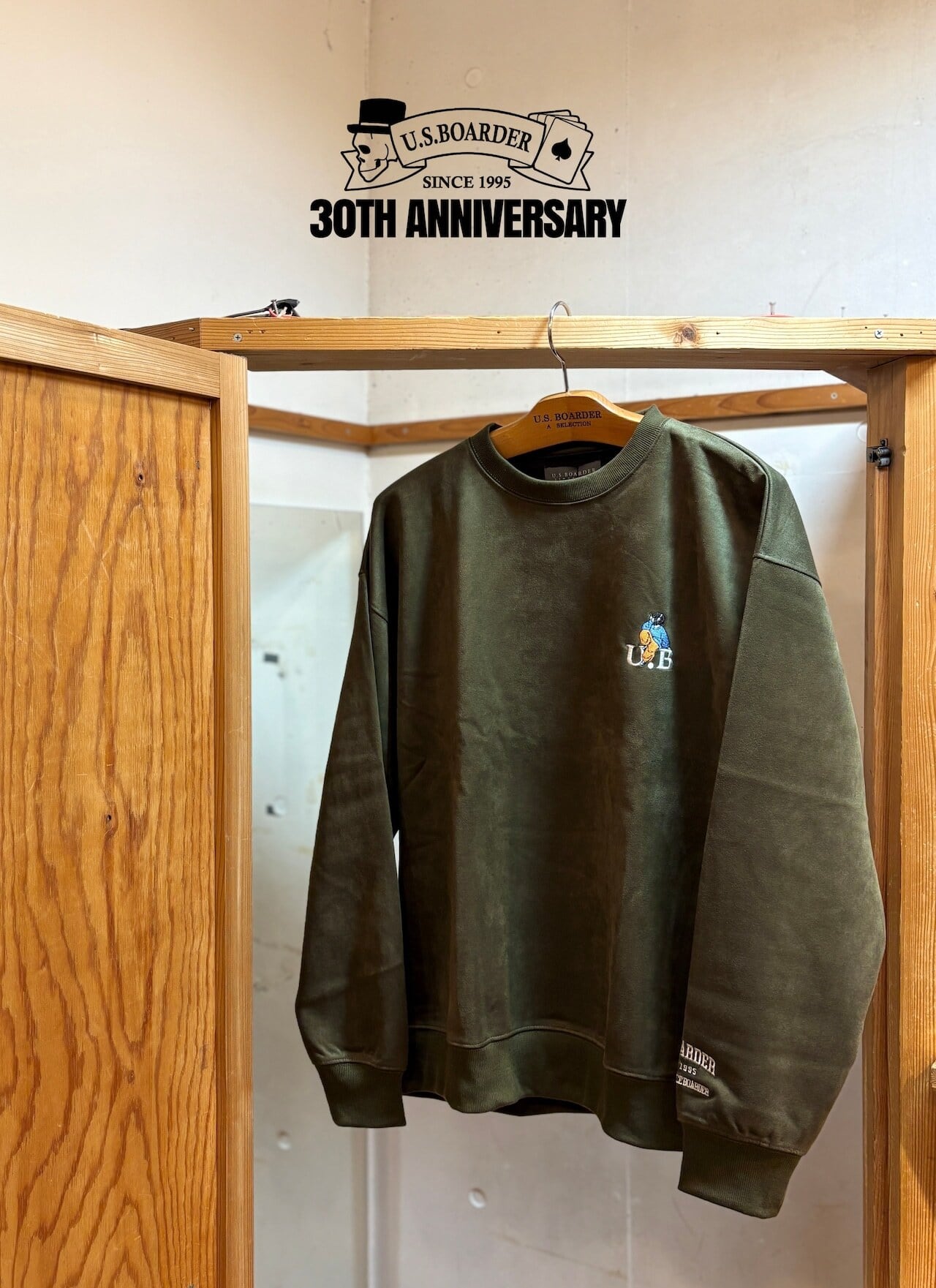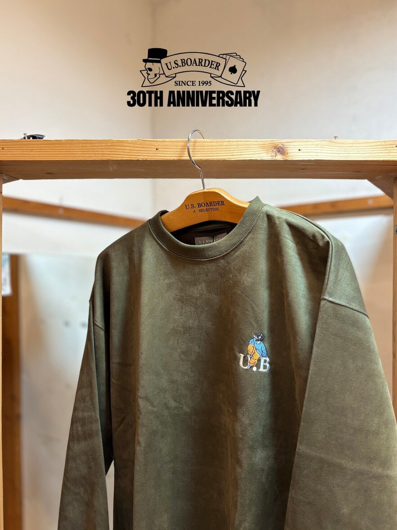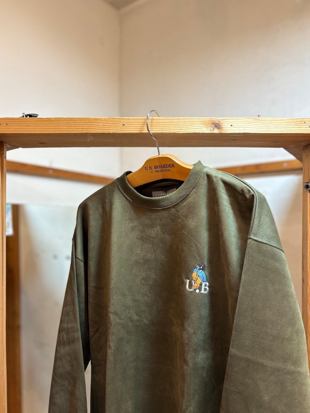 usboarder スエードトレーナー スエード トレーナー suede sweat shirt KHK カーキ Khaki ヘッドホン 女子 刺繍 U.S.BOARDER | U.S.BOARDER