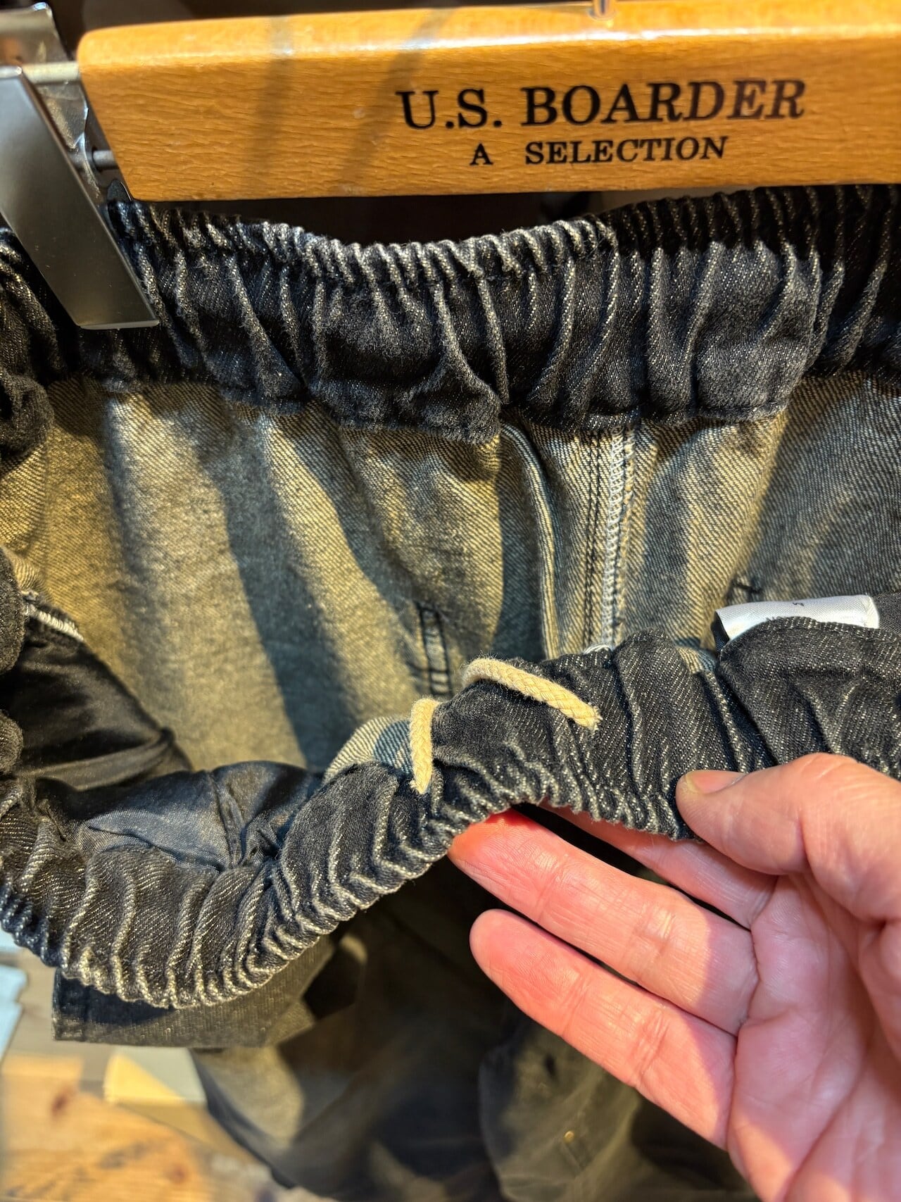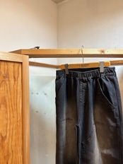 ウエストはドローストリングのゴム仕様になっている為、イージーパンツみたく伸縮性がございます。ベルト無しでも着用できます。