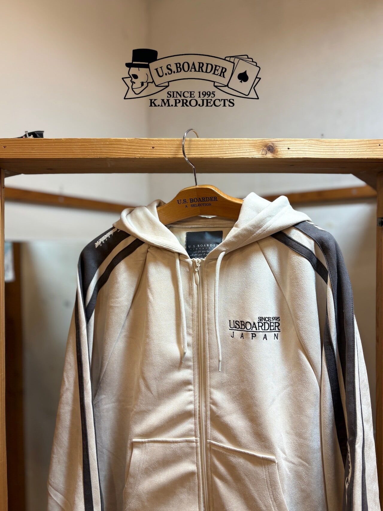 U.S.BOARDER フードトラックJ トラックジャケット Ivory IVR アイボリー Jacket フェイクスエード ベロア風 トラックジャケット ブルゾン ZIPパーカー メンズ レディース ユニセックス u.s.boarder ユーエスボーダー
