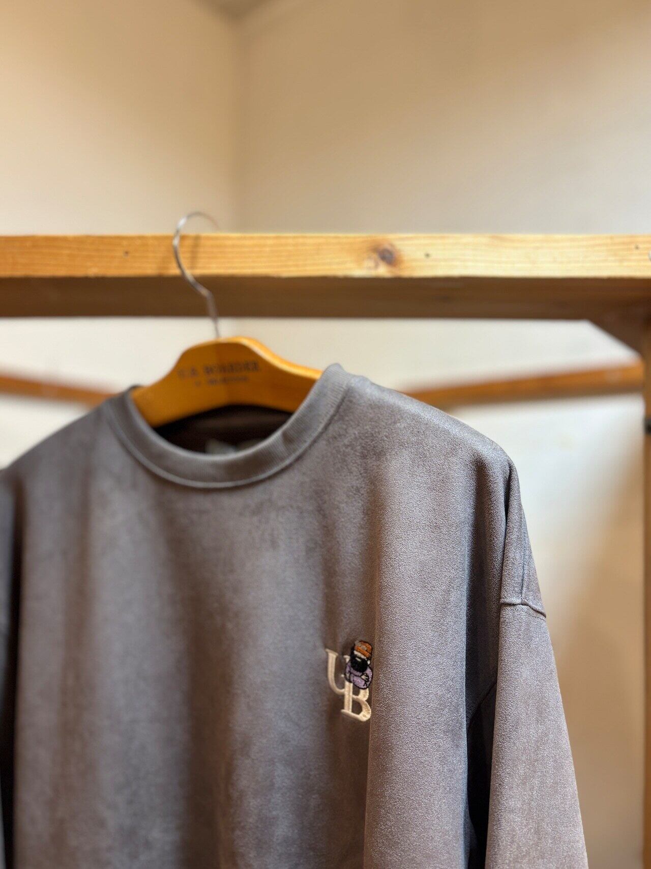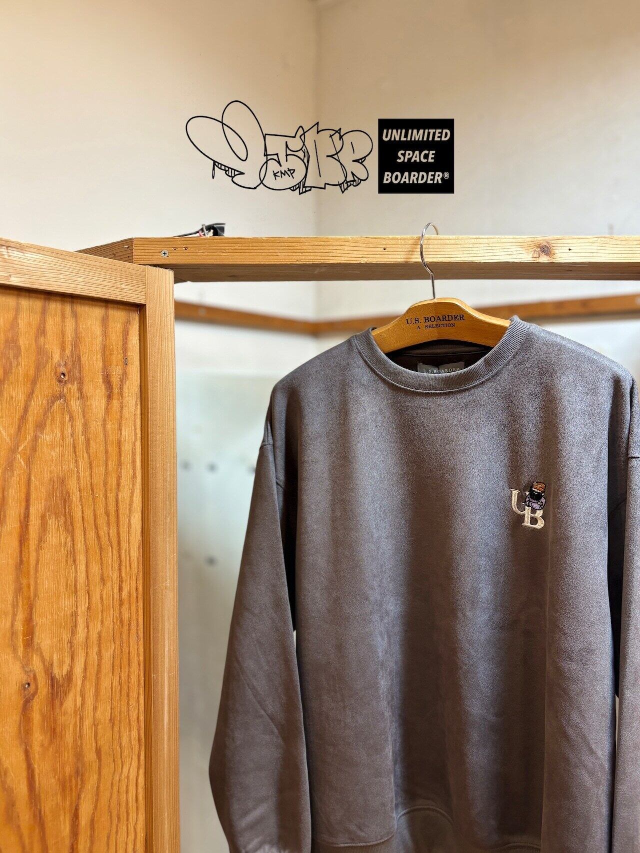 usboarder スエードトレーナー スエード トレーナー suede sweat shirt C/GRY チャコールグレイ Charcoal Gray フルベアード おじさん 刺繍 U.S.BOARDER