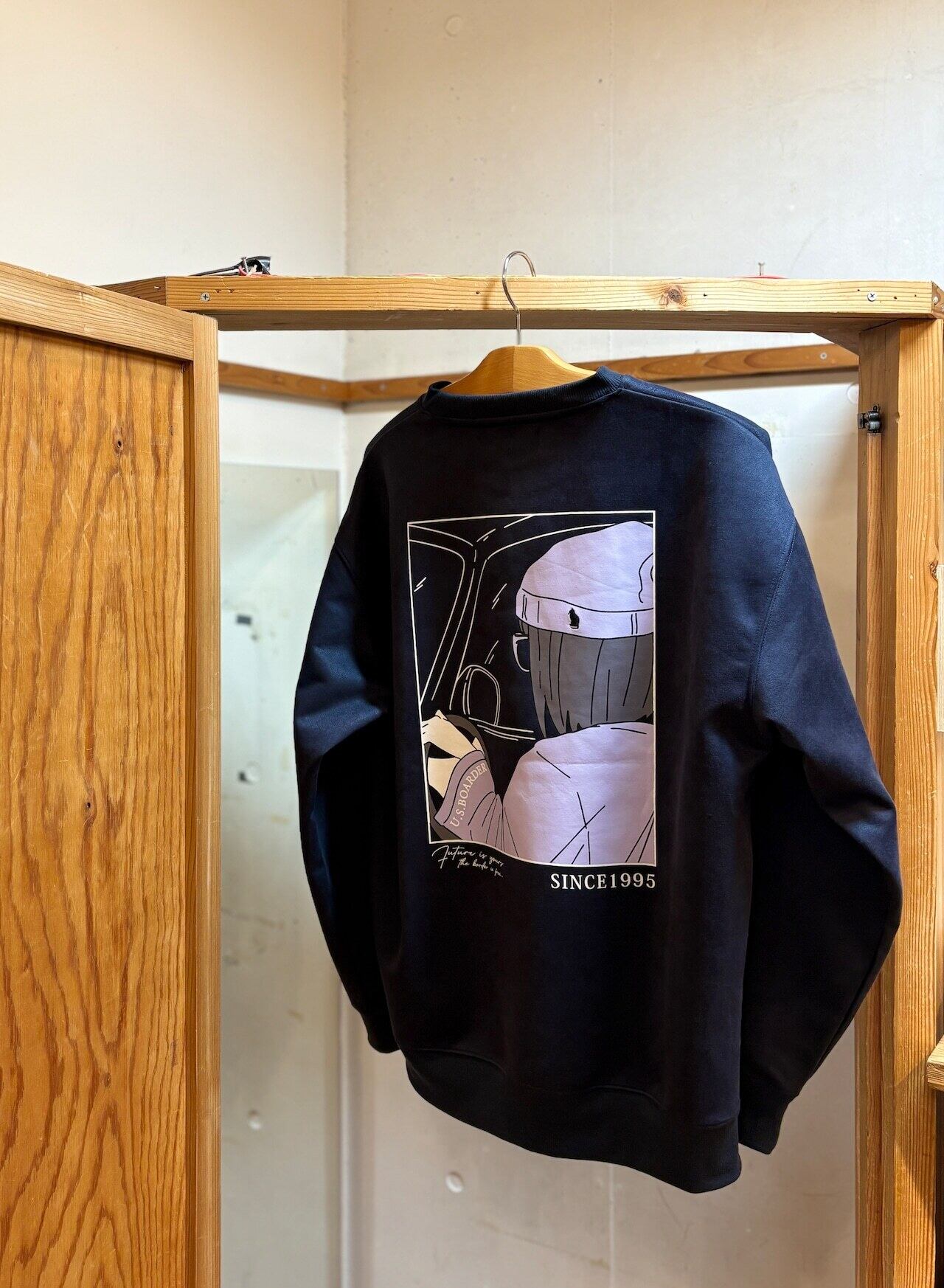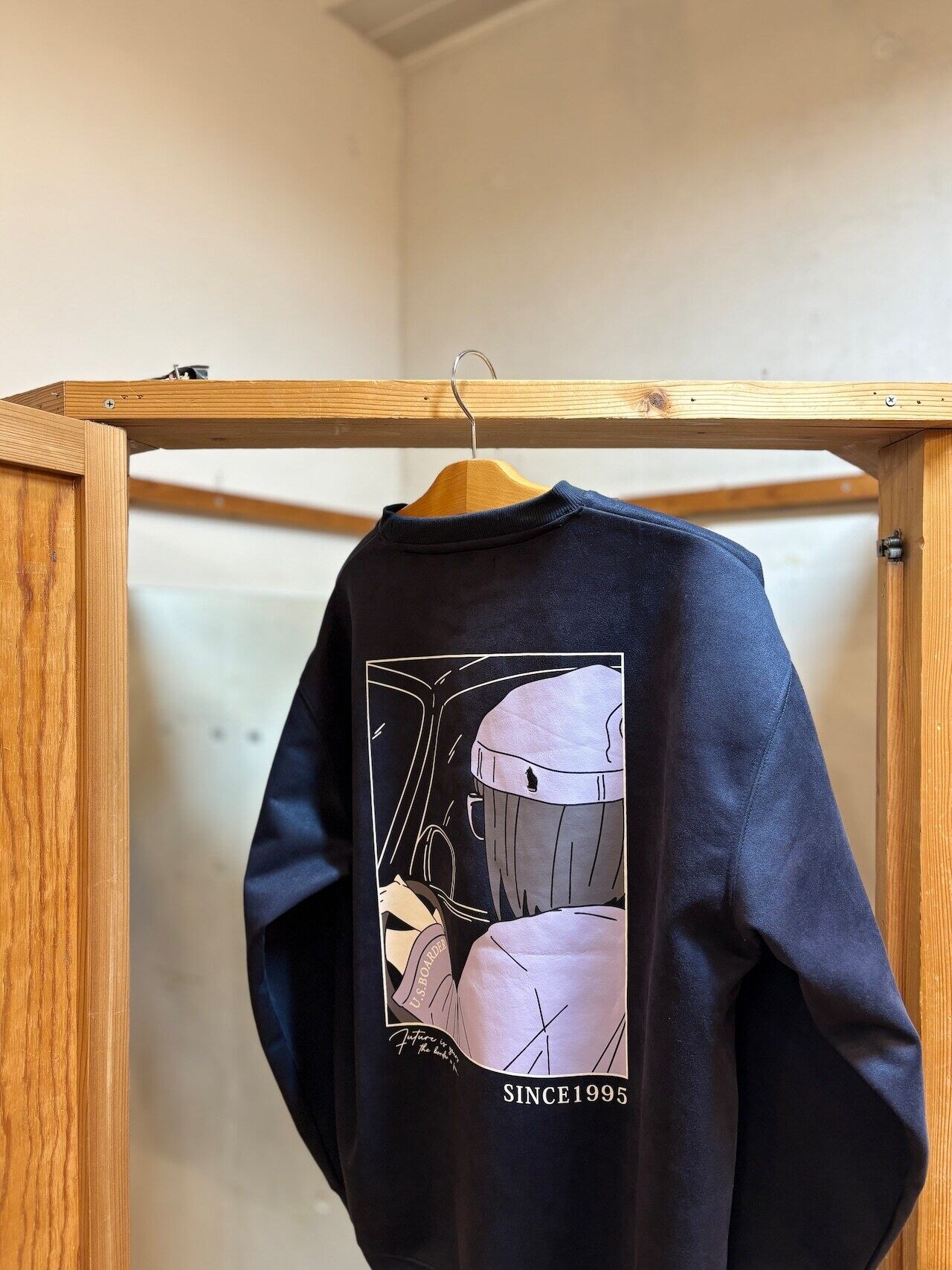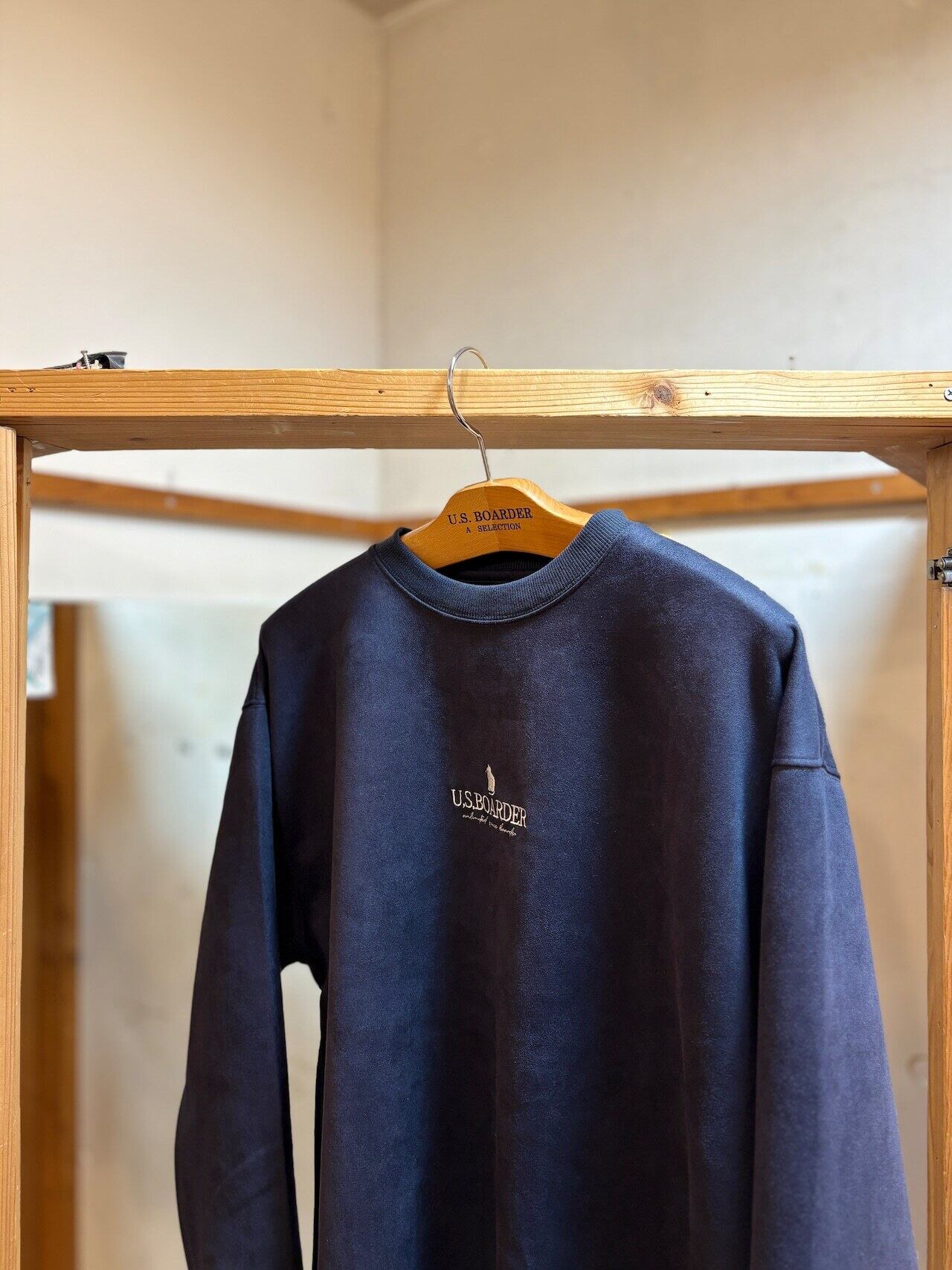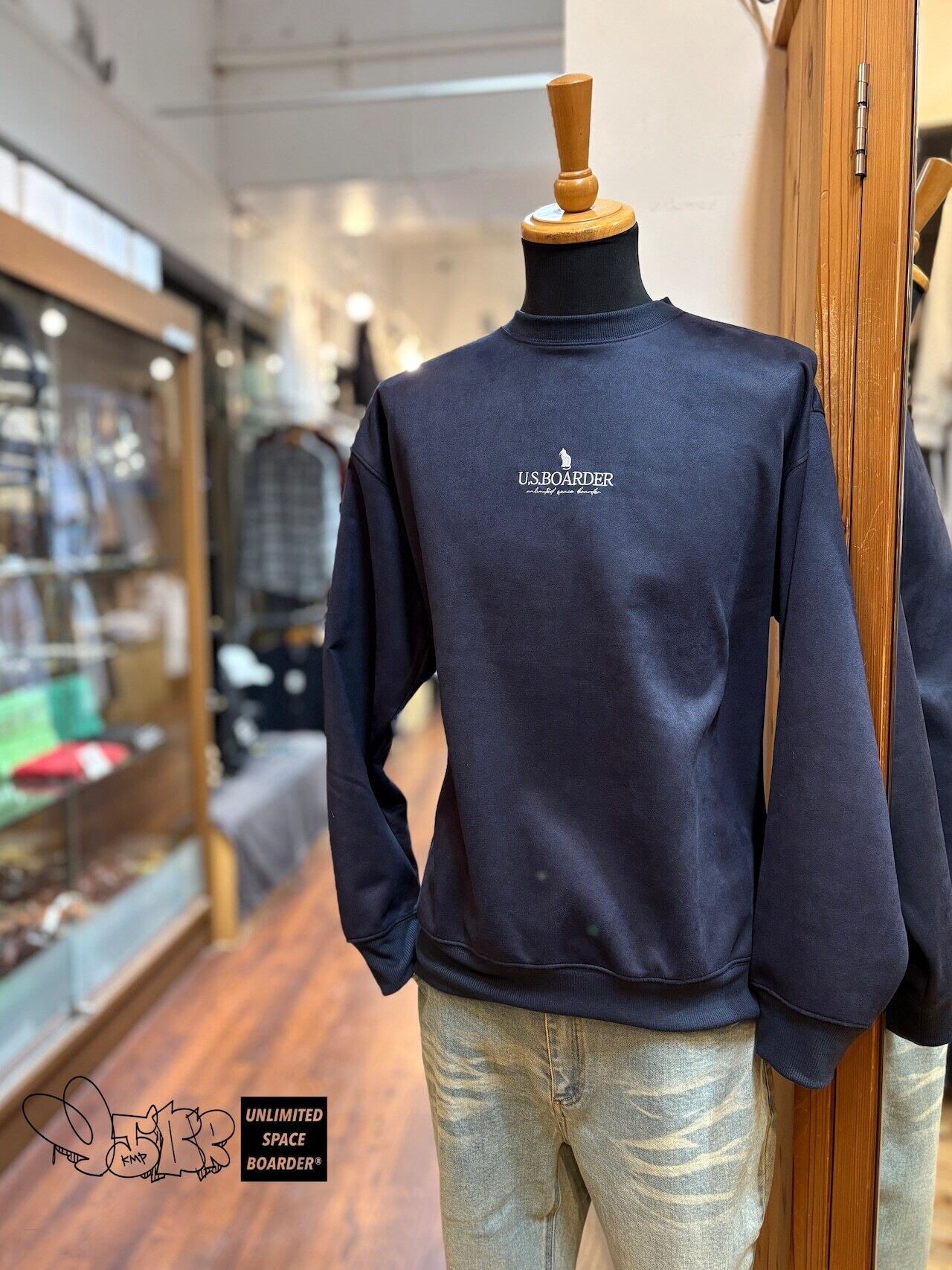 usboarder 新スエードトレーナー スエード トレーナー suede sweat shirt NVY ネイビー Navy blue 80's City Girl メガネ ワッチ ドライブ ストリートガール CAT 猫 刺繍 U.S.BOARDER
