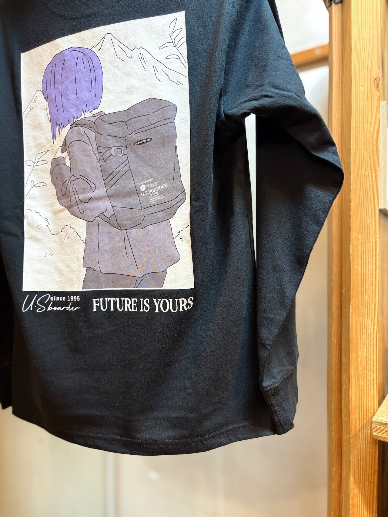 U.S.BOARDER Long-sleeve T-shirt L/T 26 Black ブラック 黒色 バックプリント ガール バックパック 登頂 登山 ロングスリーブ ユーエスボーダー u.s.boarder