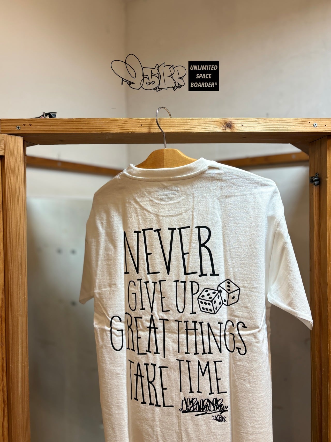 U.S.BOARDER T-shirt S/S NEVER T ネバー White ホワイト 白色 バックプリント ブランドロゴ ストリート サイコロ ダイス Dice日本 JAPAN ユーエスボーダー usboarder