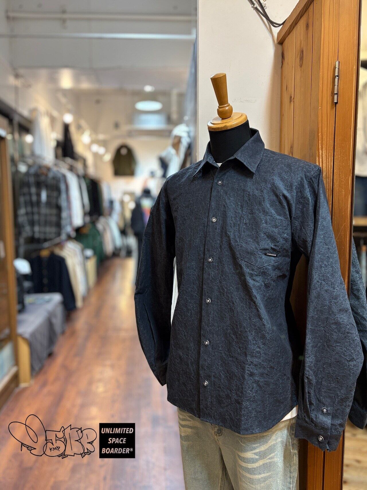 U.S.BOARDER L/S エンボスSH Indigo IND エンボス加工 ナチュラル shirt シャツ shirt メンズ 日本製 made in JAPAN ユーエスボーダー