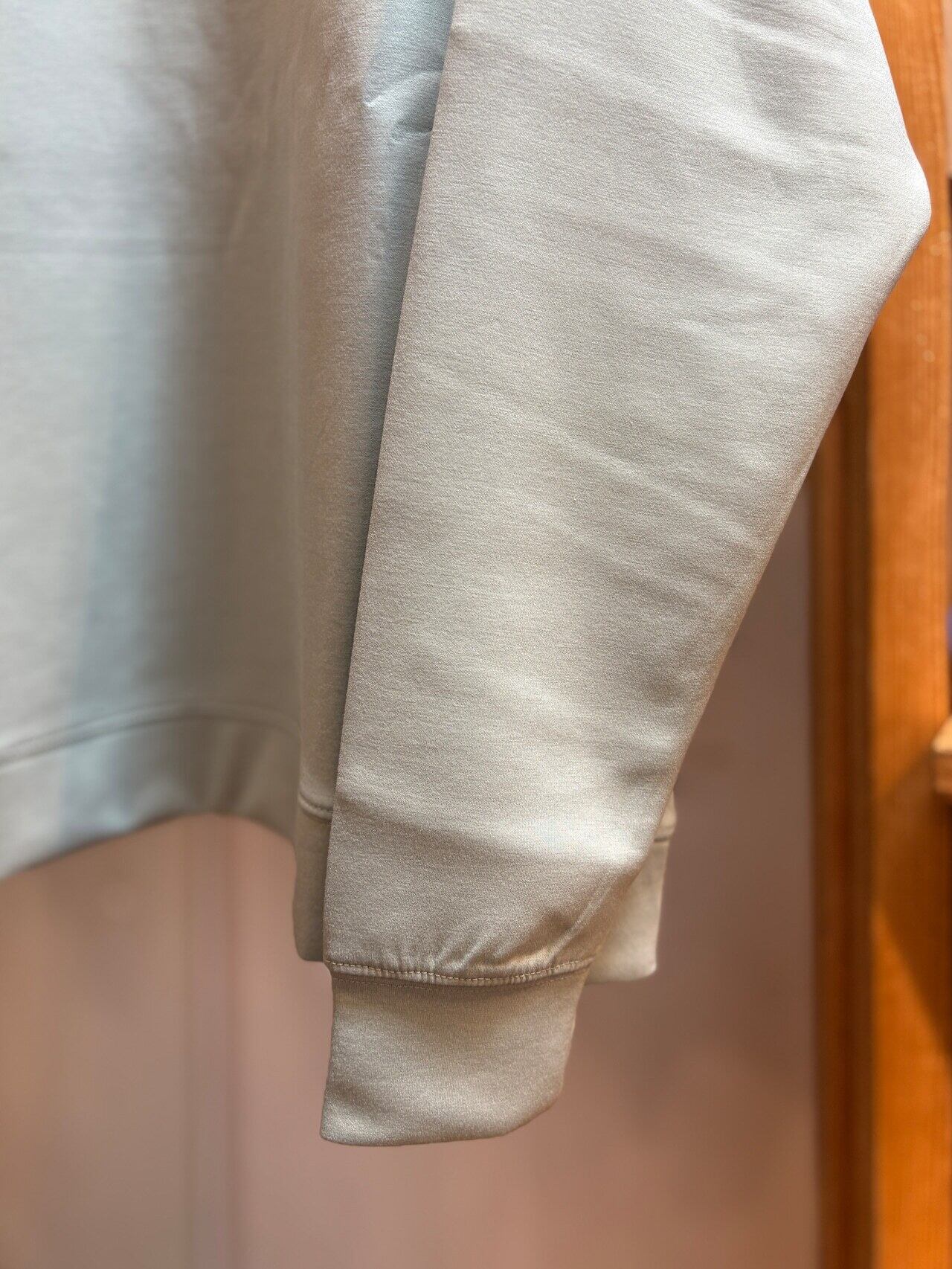 軽い生地感に滑らかな風合い、肌触りが心地よく、スウェット素材の雰囲気を楽しめます。