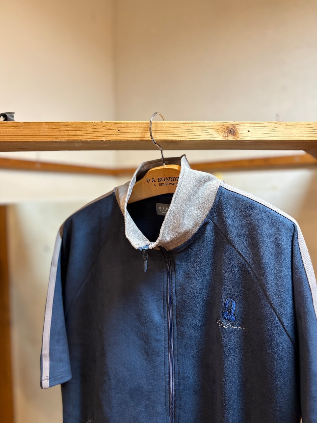 U.S.BOARDER S/S ZIPスエード ヘッドフォン headphones NVY Navy blue ネイビー ブルー Jacket フェイクスエード DJブース バケットハット トラックジャケット メンズ レディースu.s.boarder ユーエスボーダー