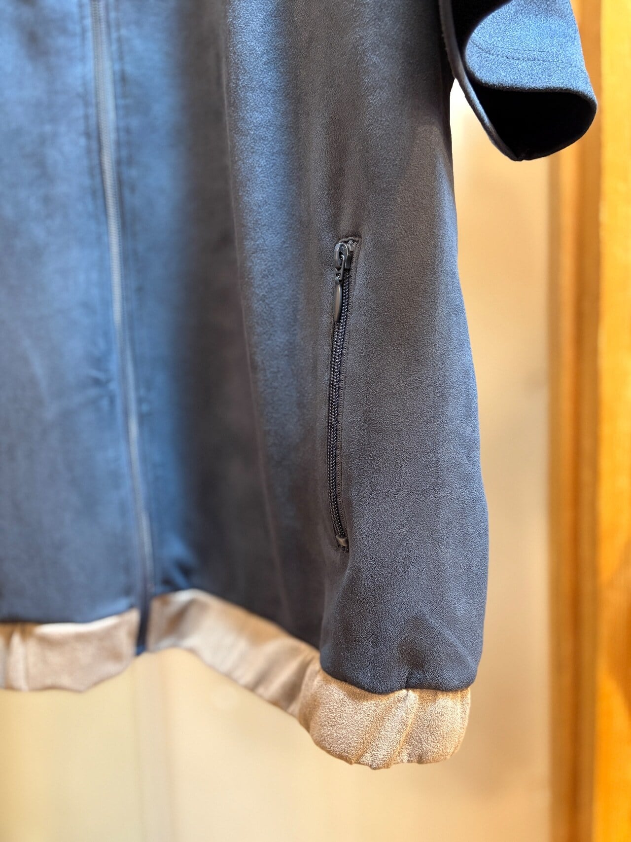 フェイクスエードの軽い生地感の雰囲気が楽しめます。ベロア調の滑らかな肌触りが特徴的です。