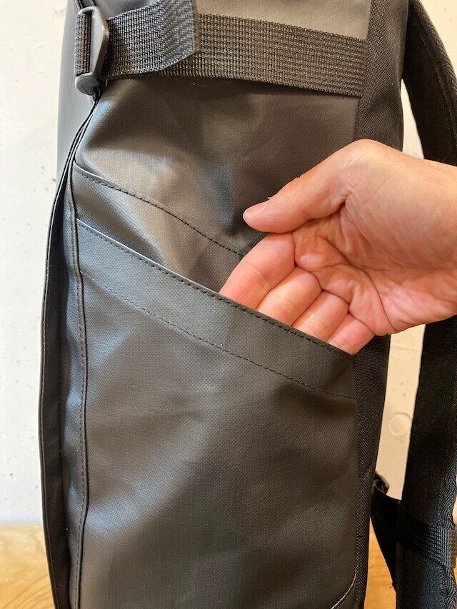 サイドポケットや、肩を固定する為のチェストストラップ付き。