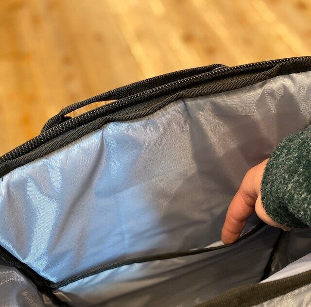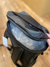 メインコンパートメント内側にPC、タブレットの収納ポケット付き。入り口はZIP仕様で大きな荷物もスッポリと収まります。(内容量30ℓ)