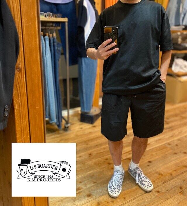 usboarderでは定番の深めのバックポケットに左右異なるデザイン。ウエスト後ろ部分がゴム仕様になっている為、イージーパンツみたく伸縮性がございます。ドローストリングにより、大きめでもベルト無しで着用できます。