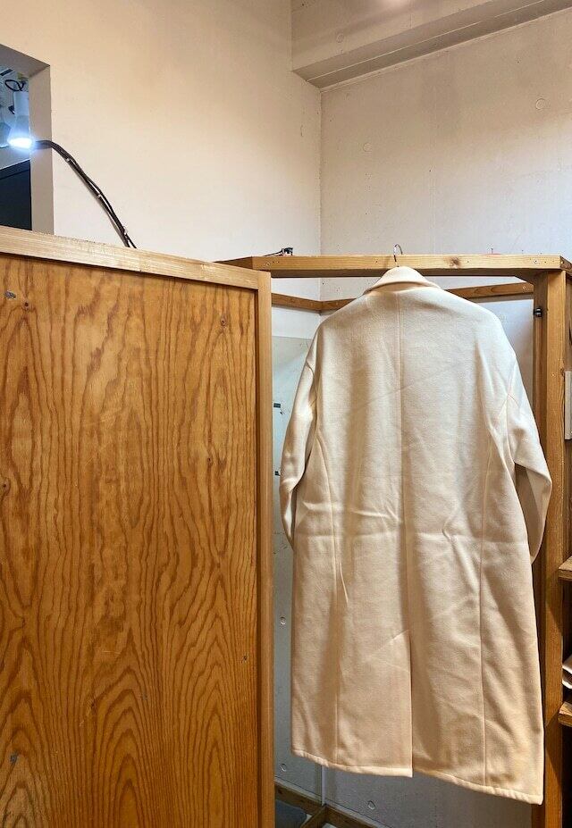 アイボリーを基調としたクラシックな雰囲気のコートです。