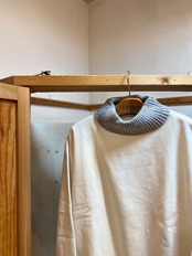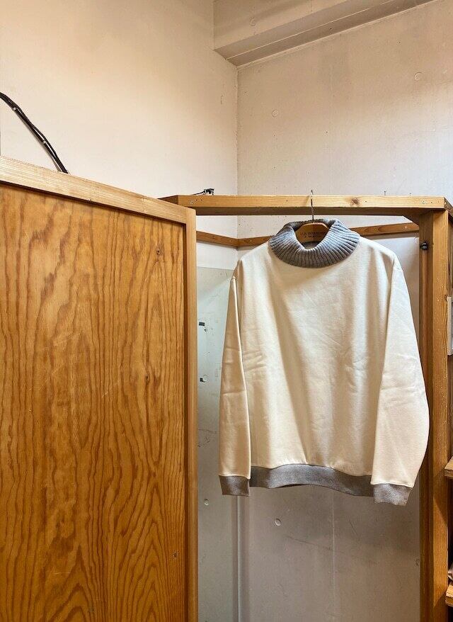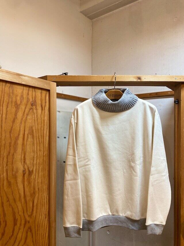 ハイネックのニットをモチーフにしたツートンのスウェットトレーナーです。