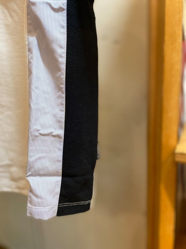 ホワイトを基調としたジオメトリックな縦の変則的なストライプ、幾何学模様の切り替えしがフロントに。