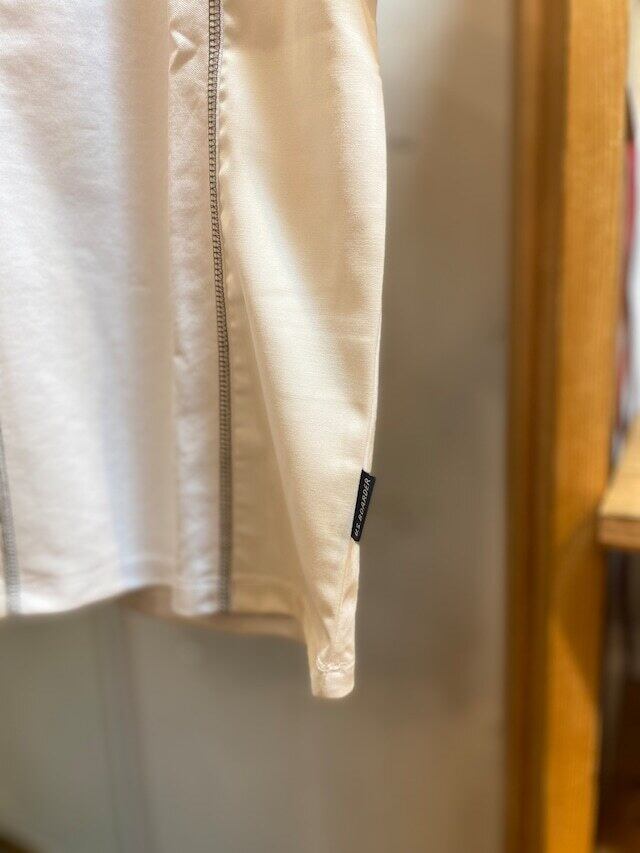 ジャージに近い素材ですが、ハリのある生地感が特徴的に。肌触りが良く通気性にも優れ、型崩れしにくい点、伸縮性があるので着心地も抜群です。